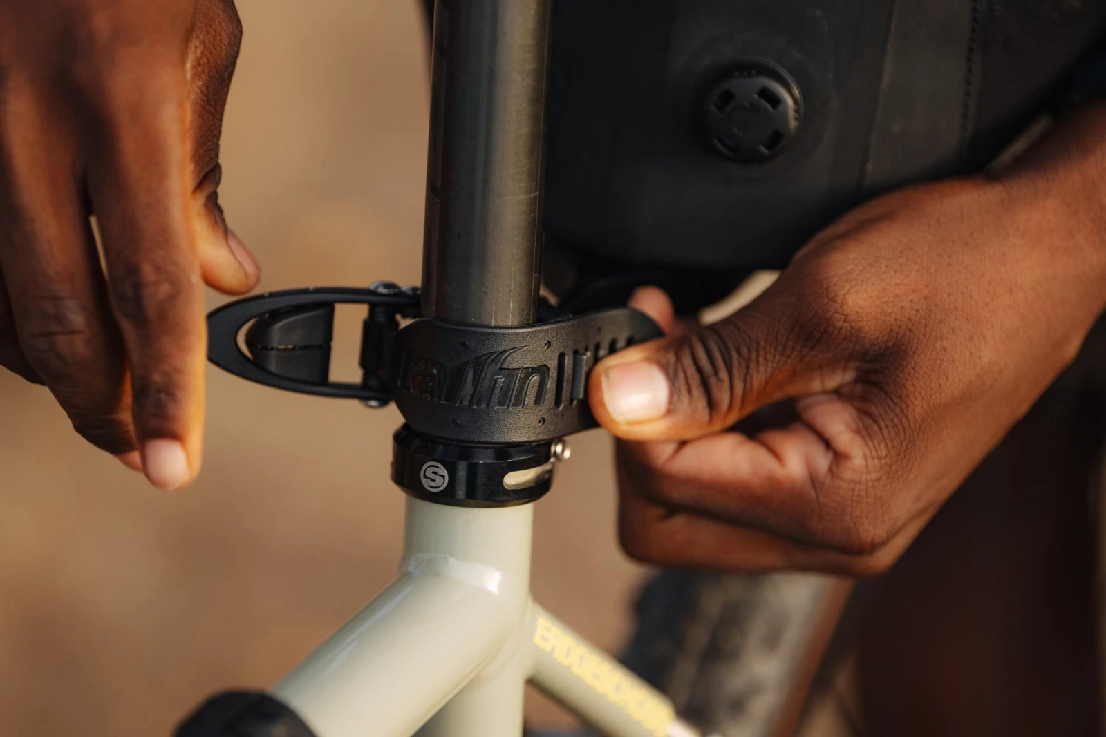 Son système de fixation garantit un excellent maintien tout en assurant une très large compatibilité, y compris avec des vélos dépourvus d’interfaces pour porte-bagages. La base rigide de l’AeroPack est reliée à la tige de selle par un collier, et stabilisée par une arche rigide, que l’on connecte à l'axe de la roue arrière ou aux œillets de porte-bagages, au moyen de divers adaptateurs.